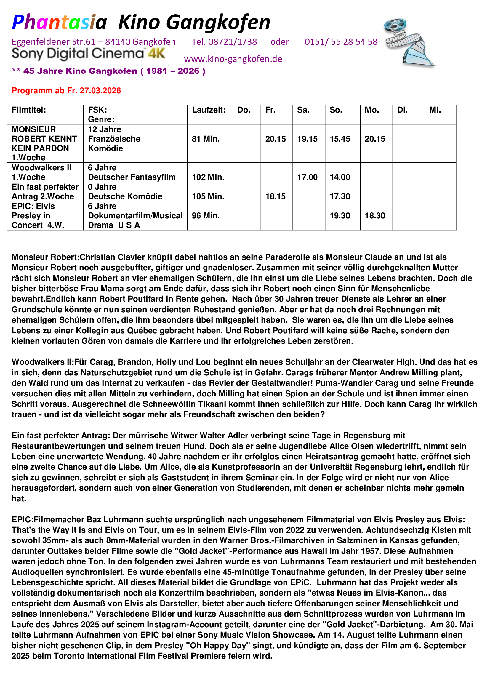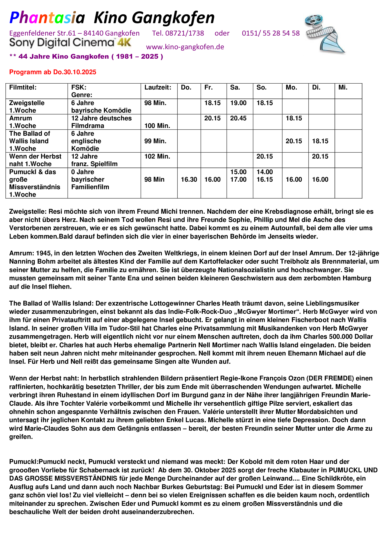 ** 44 Jahre Kino Gangkofen 30.10.1981 - 2025 **